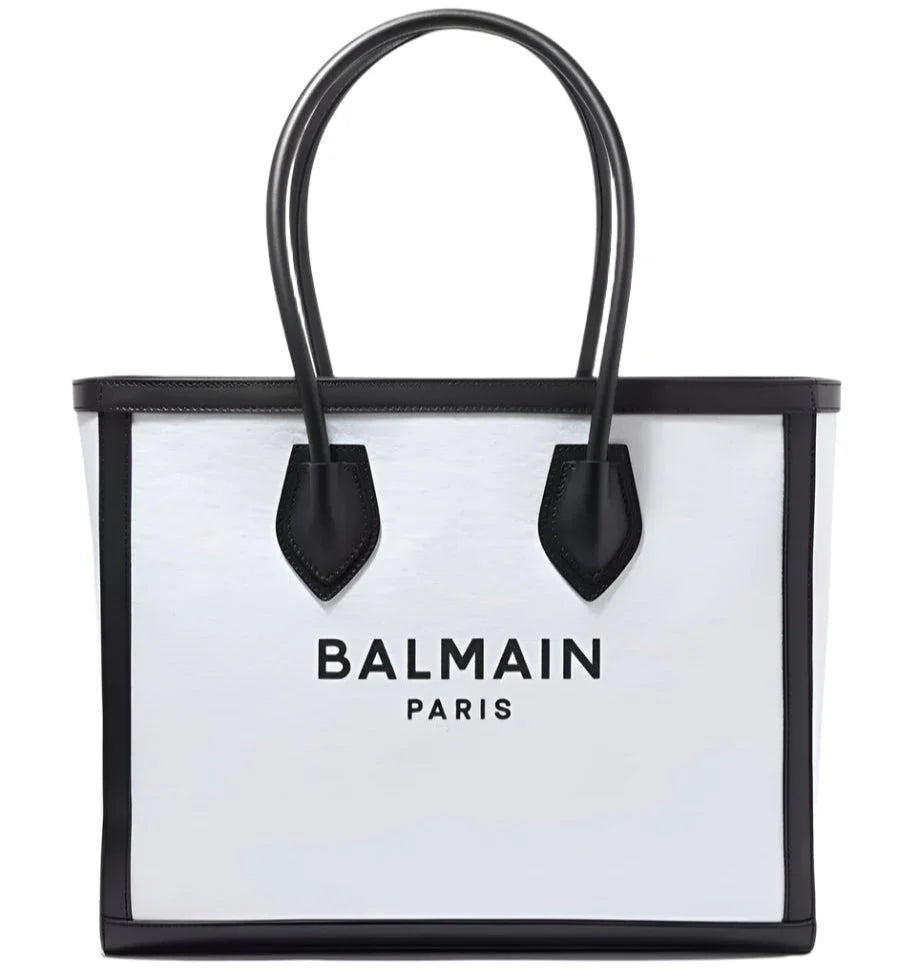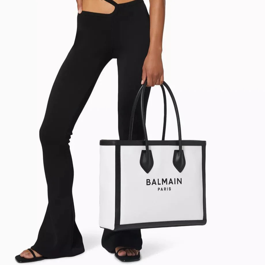 Introducing the Balmain B-Army Shopper Tote Black Bag. Crafted with high-quality materials, this bag features the iconic Balmain B-Army logo, making it a must-have for fashion-forward individuals. Its spacious interior and sturdy design make it perfect for everyday use. Add a touch of luxury to your wardrobe today