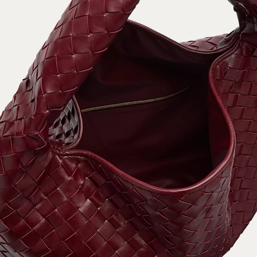 Add a rich pop of color to your wardrobe with the Large Hop Shoulder Bag in Wine — a luxurious accessory that perfectly blends style and practicality.
