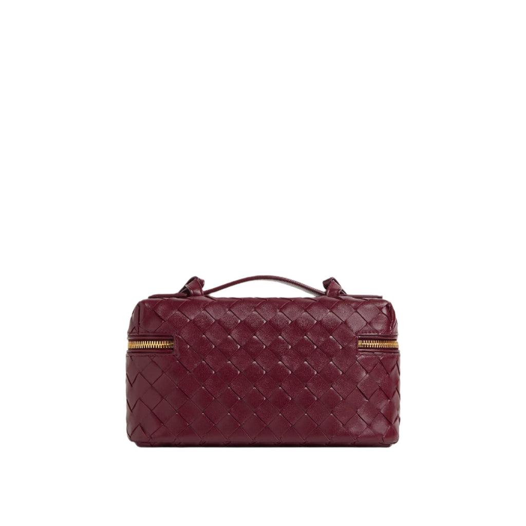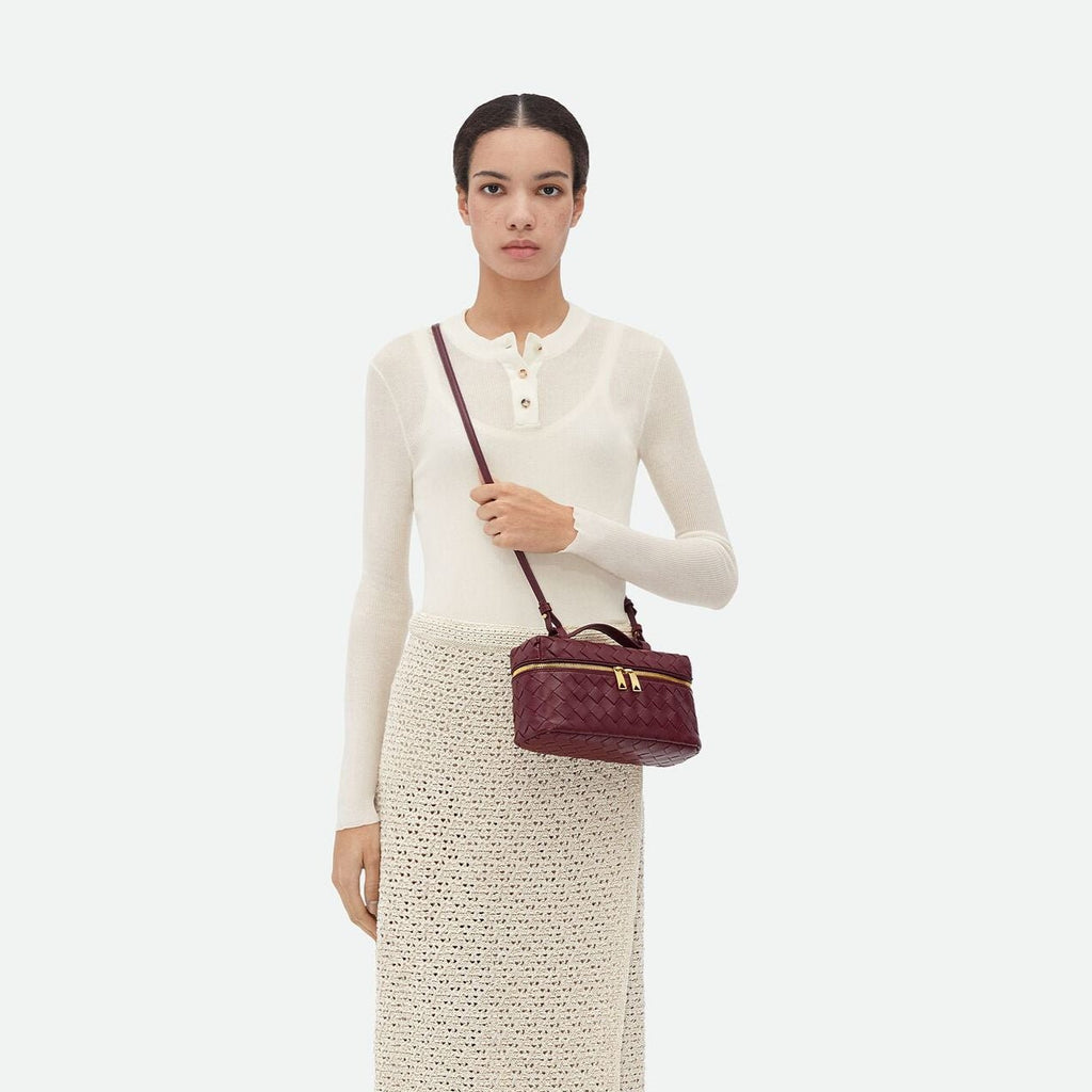 Expertly crafted from premium leather, the Bottega Veneta Intrecciato Vanity case features the iconic Intrecciato design. With multiple compartments and a sturdy handle, it provides both style and functionality for your travel needs. Elevate your travel game with this luxurious vanity case