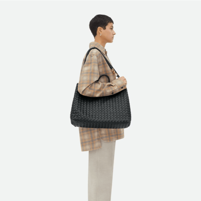 Made from supple Intrecciato-woven leather, this oversized silhouette offers a luxurious blend of structure and softness, designed for those who value form, function, and timeless style.