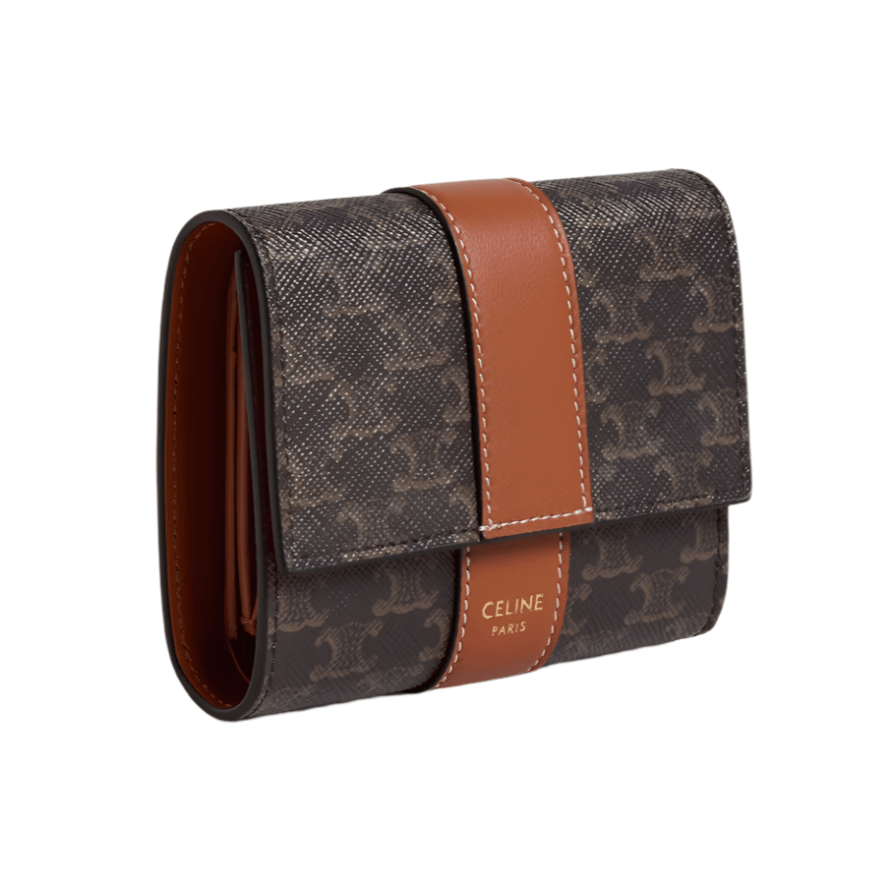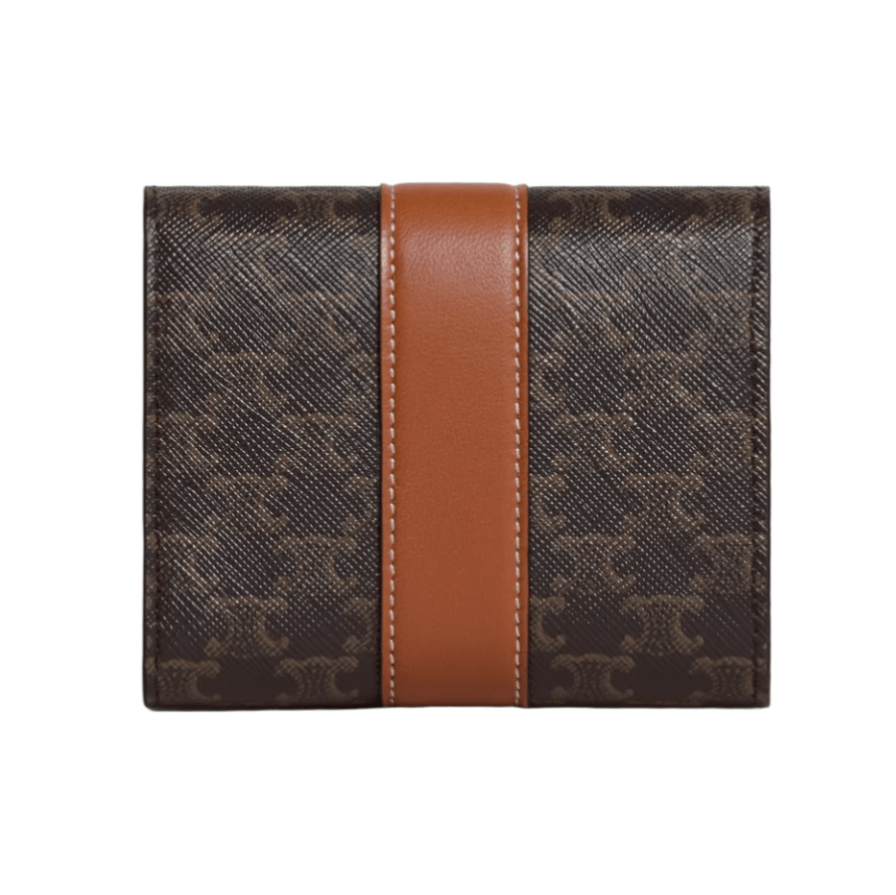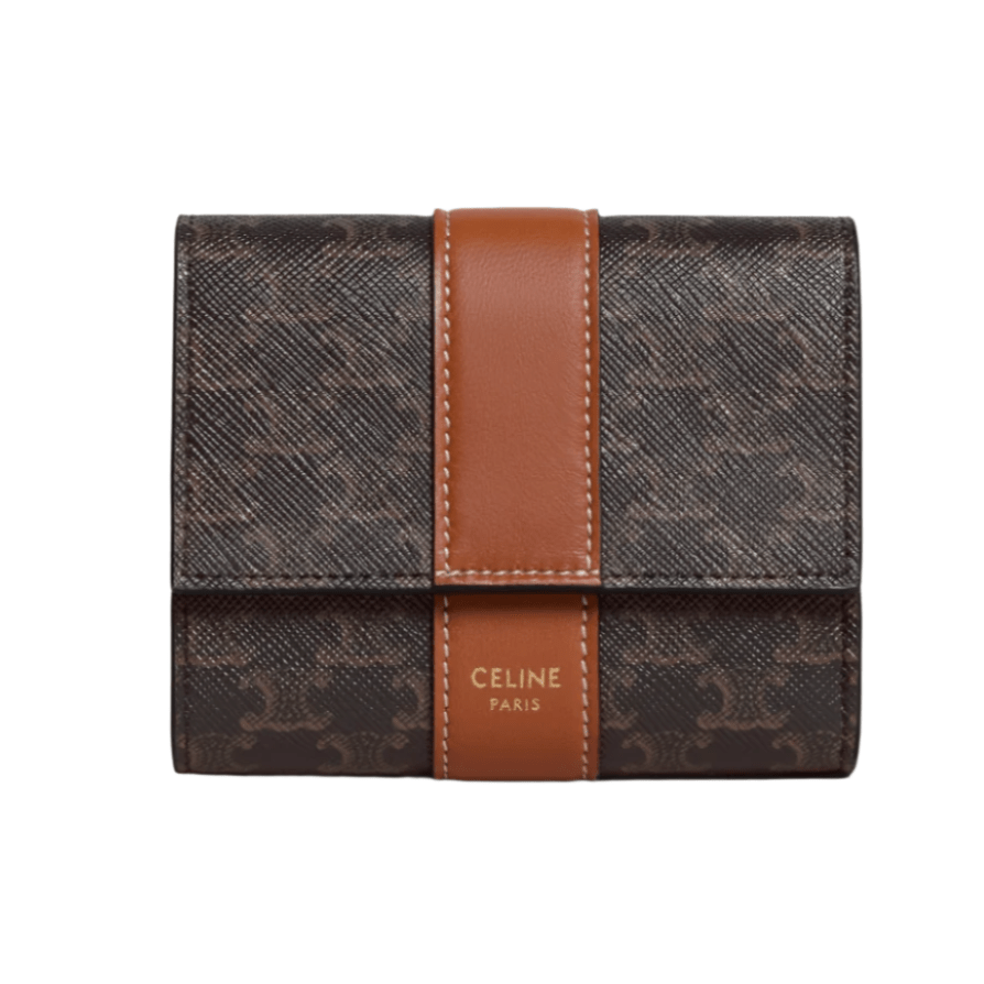 This Celine Small Trifold wallet features a combination of durable Triomphe Canvas and luxurious Lambskin leather, providing both style and functionality. With multiple compartments and a secure closure, this wallet is the perfect accessory for organizing and protecting your essentials.