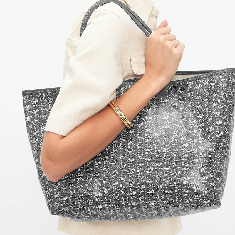 The Goyard St Louis PM Tote in grey combines timeless elegance with practical design. Crafted from durable Goyardine canvas, this lightweight tote features spacious interiors complemented by a matching pochette for secure storage of essentials. Its versatile style suits both casual and formal occasions, offering refined sophistication and everyday functionality in one iconic accessory.