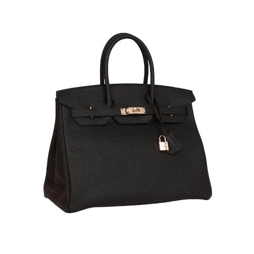 This iconic Hermès Birkin 35 comes in eye-catching black Togo leather with distinguished rose gold hardware. Its timeless design and superior craftsmanship make this bag the perfect choice for those seeking luxury and style.