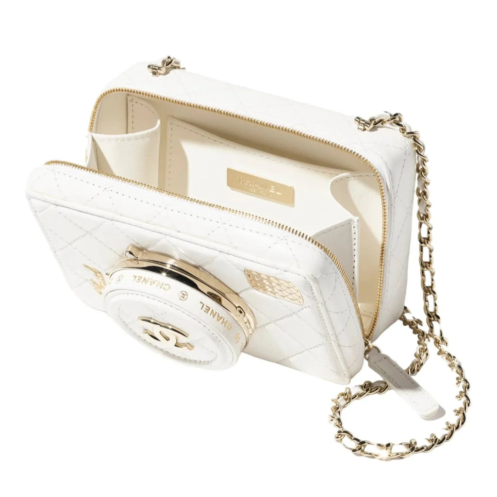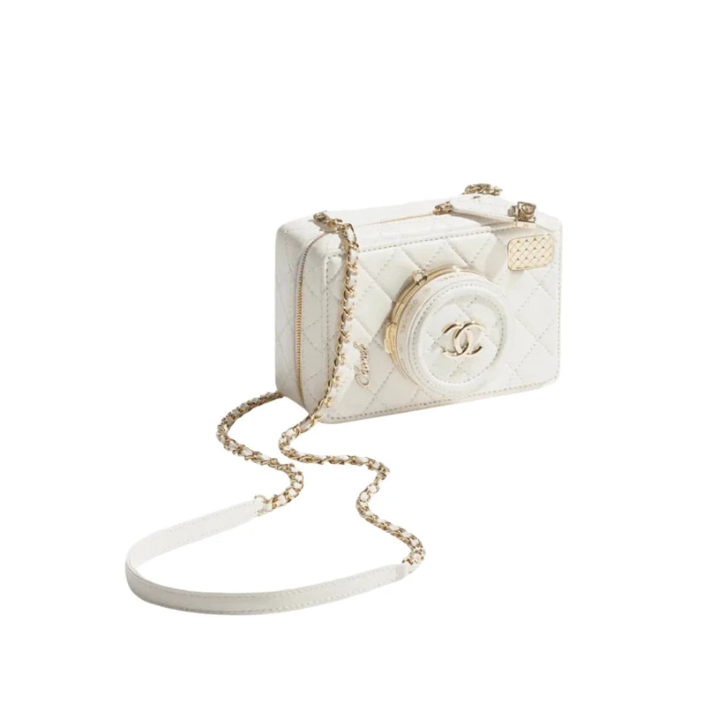 Introducing the luxurious Chanel Camera Bag made with soft lambskin and accented with elegant gold details. Perfect for any occasion, this bag is both stylish and practical with enough space for all your essentials. Elevate your wardrobe with this timeless piece from Chanel