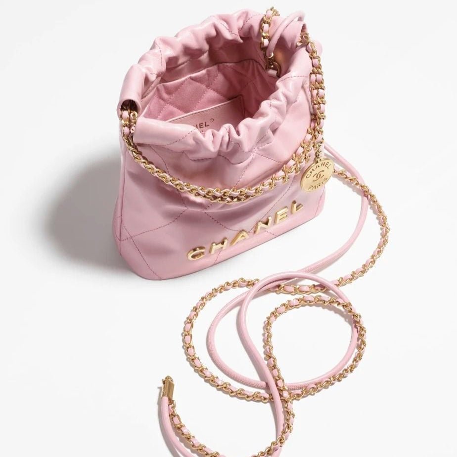 Expertly crafted with shiny calfskin and gold-tone metal, the Chanel 22 Mini Handbag exudes luxury and sophistication. Its compact size makes it perfect for on-the-go fashionistas, while the striking pink color adds a touch of femininity. Elevate any outfit with this timeless and iconic handbag.