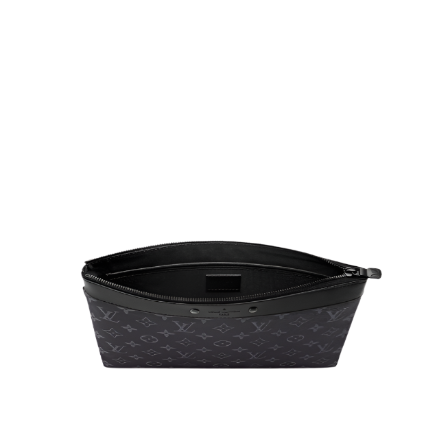 The new Pochette To-Go offers a stylish, sophisticated alternative to a conventional bag or attaché case. Crafted in Monogram Eclipse canvas, with a riveted label for a subtle signature touch, it’s roomy enough to hold papers, small digital devices and other personal essentials. And its removable wristband makes it a breeze to carry, ready to go anywhere.
