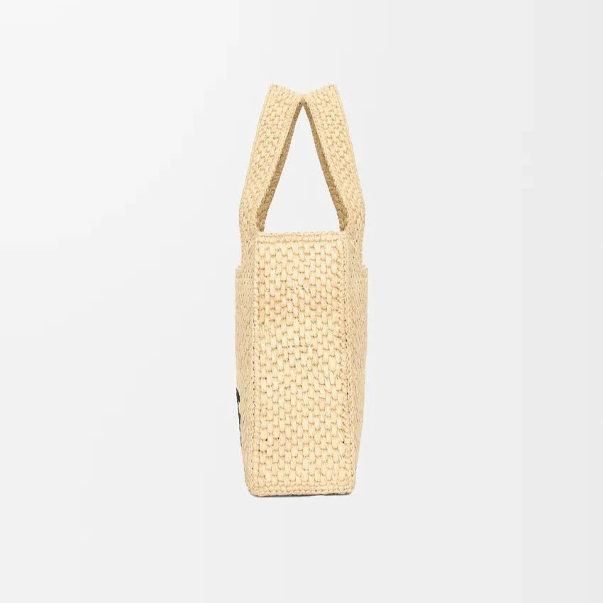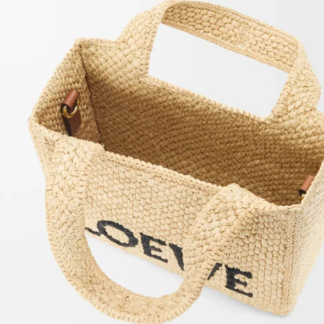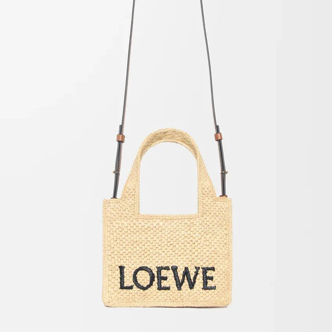 Expertly crafted, the Loewe Paula's Ibiza Medium tote bag boasts a logo design and is made with durable raffia material. Perfect for summer, its spacious interior allows for convenient storage while also showcasing a stylish accessory. Upgrade your beach-look with this must-have piece.