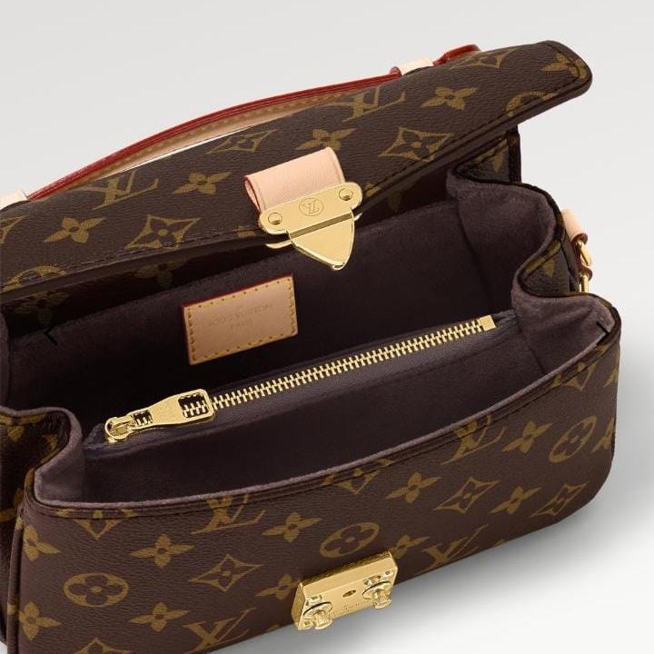 The product features coated canvas with gold-color hardware, an s-lock closure, an outside zipped pocket, three inside compartments, an inside middle zipped pocket, and a removable, adjustable strap. It is available in black.