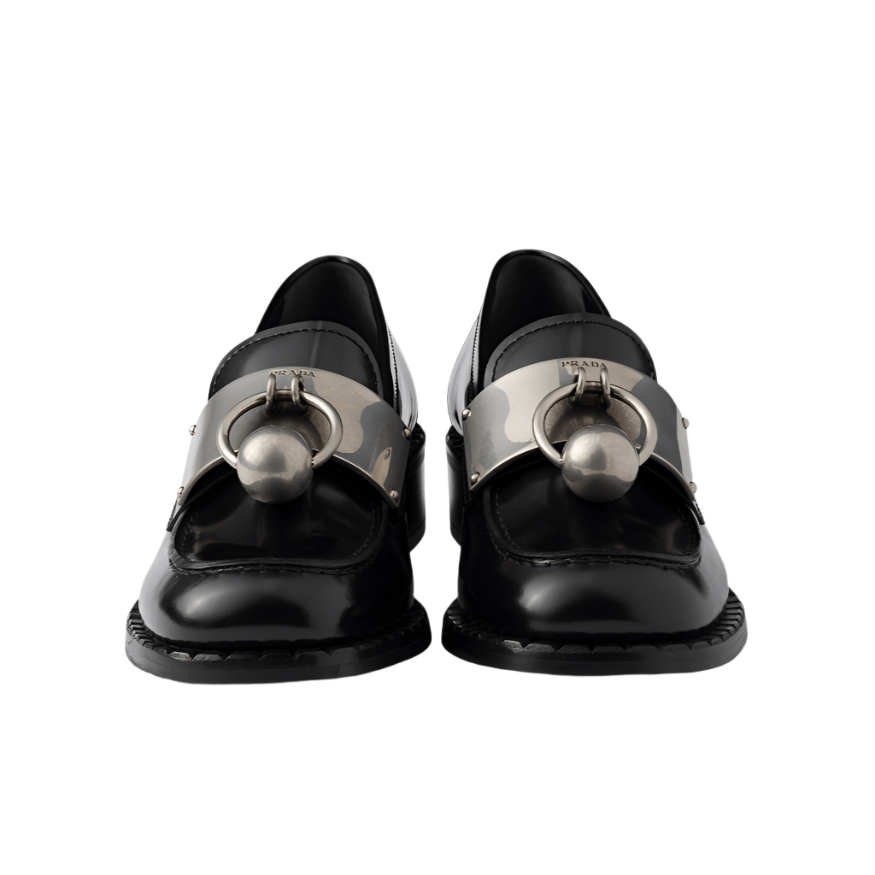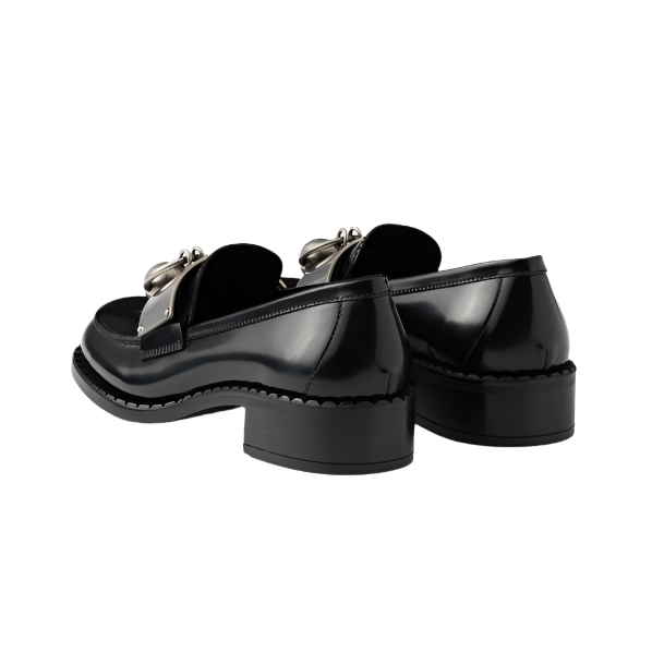 Crafted from premium brushed leather, these loafers combine refined texture with sleek metal accents for a sophisticated edge. Designed for comfort and durability, they offer a polished look suitable for both professional and casual settings. The metal details enhance the classic silhouette, making these loafers a versatile addition to any wardrobe.