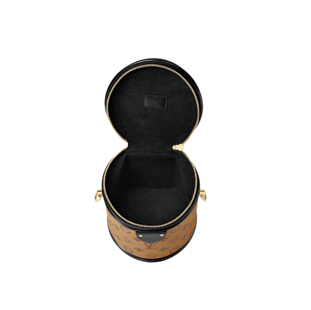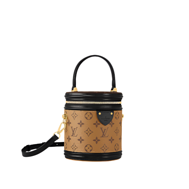 Featuring the historical shape of the LV Cannes beauty case, designer Nicolas Ghesquière revives a long-standing classic with the Cannes handbag. Petite in size and presented in a mix of Monogram and Monogram reverse coated canvas, the elegant piece reanimates a traditional silhouette steeped in Louis Vuitton heritage. A removable leather strap and top handle provide a range of carrying options.