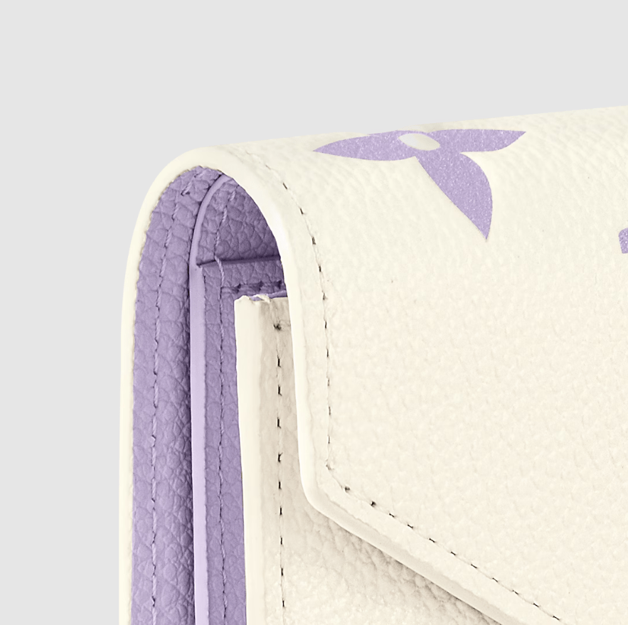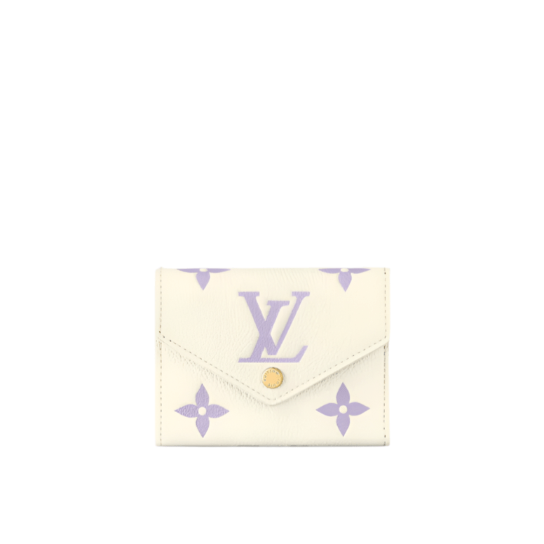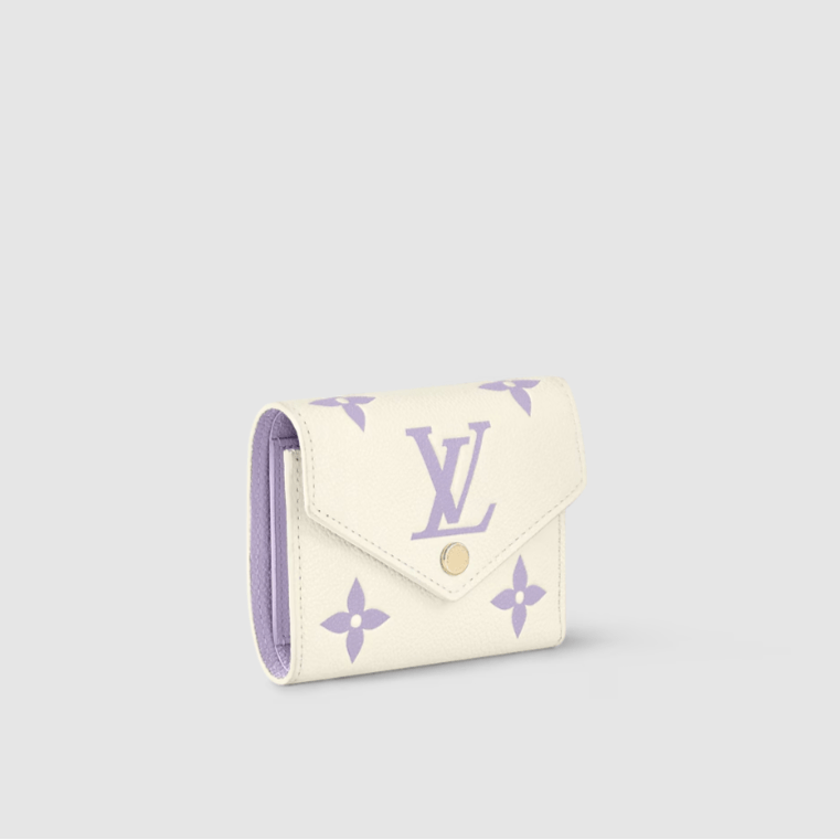 For this seasonal edition, the Victorine wallet comes in Monogram Empreinte leather in two pastel shades. The soft, bicolor palette brings a particularly refined touch to this tiny wallet, whose envelope-style flap is fastened with a Louis Vuitton-engraved press-stud. Though small in size, it offers ample space for bills, coins and cards.