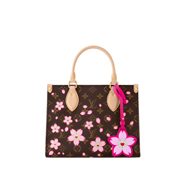 This timeless OnTheGo PM bag is playfully refreshed with statement Cherry Blossom motifs from the exclusive re-edition of the Louis Vuitton x Murakami Collection. Symbolising renewal, the Japanese artist’s vibrant floral motifs are printed over the House’s iconic Monogram coated canvas, while natural cowhide leather trims and golden hardware complete the look. A removable Cherry Blossom charm adds a final seasonal flourish.