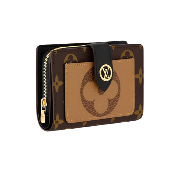 The Juliette wallet is crafted from iconic Monogram canvas, complemented by a distinctive front pocket in Monogram Giant Reverse canvas. This perfect medium-size compact wallet offers four card slots, a pocket for bills and a...