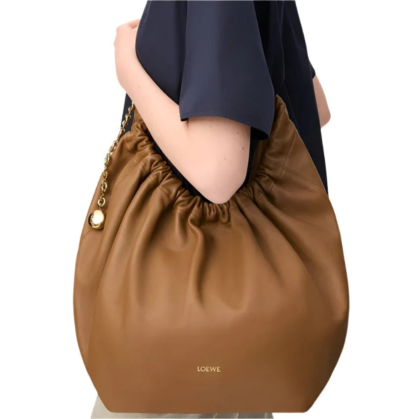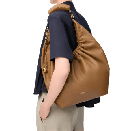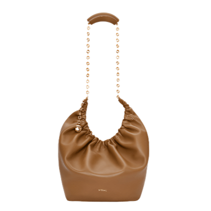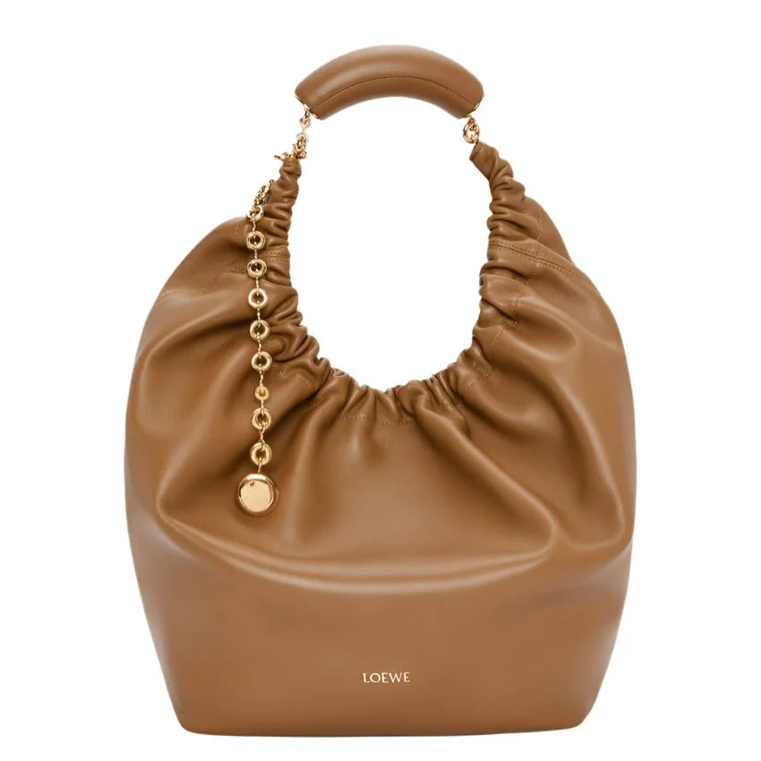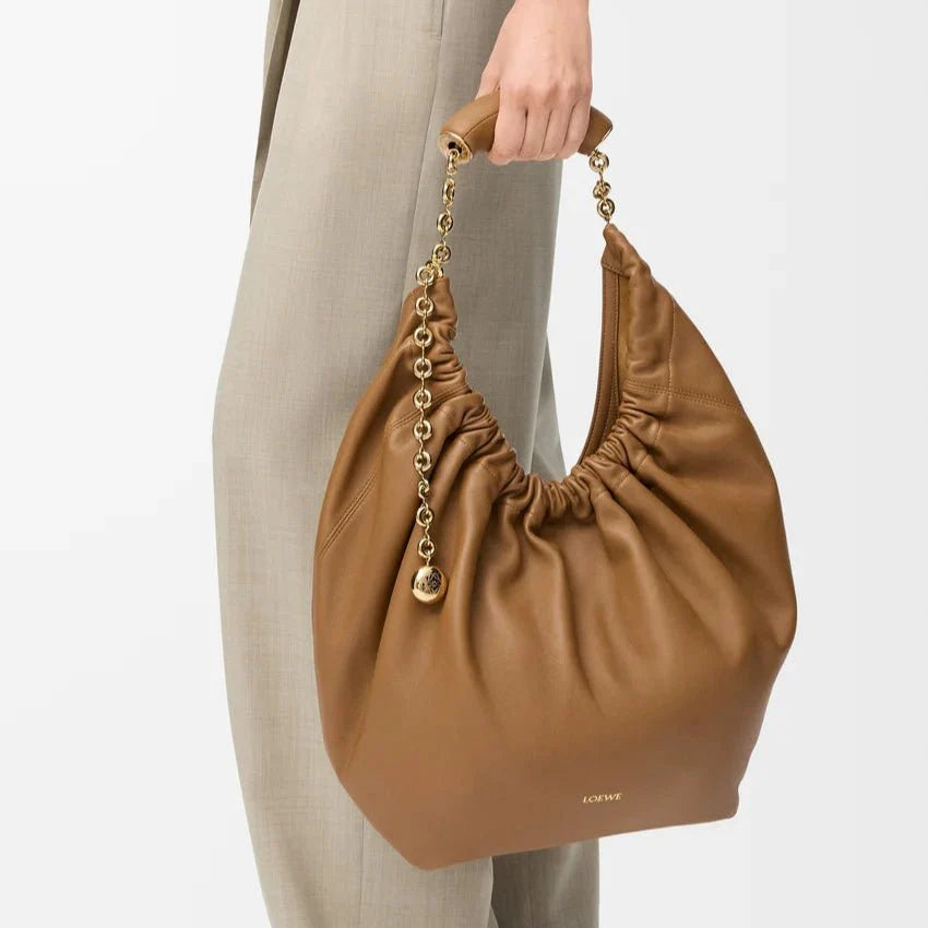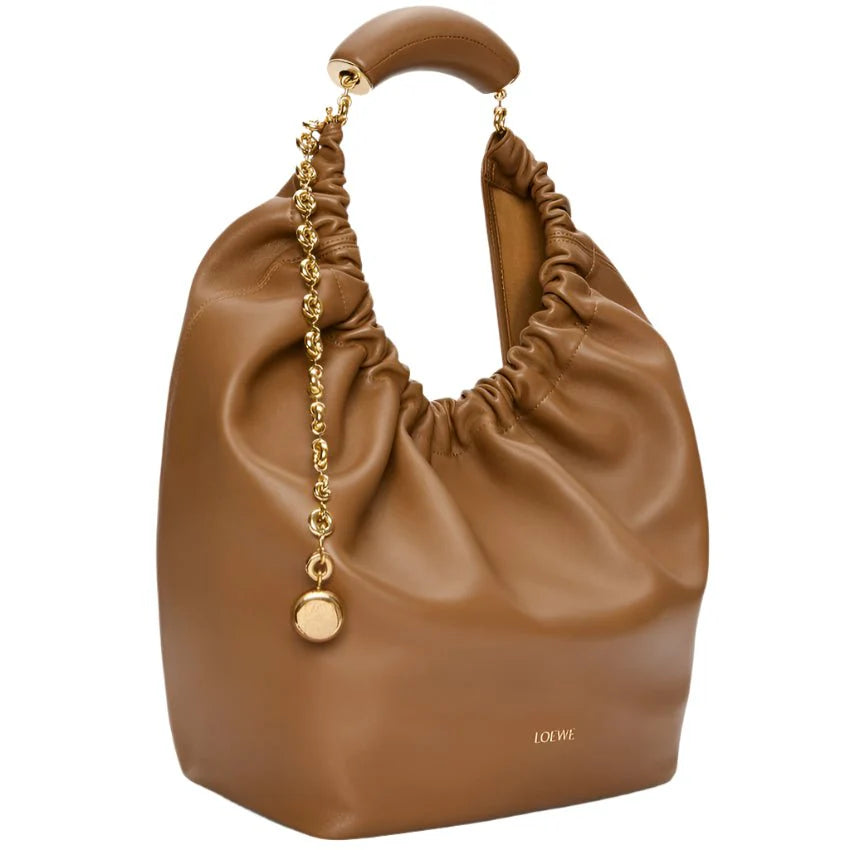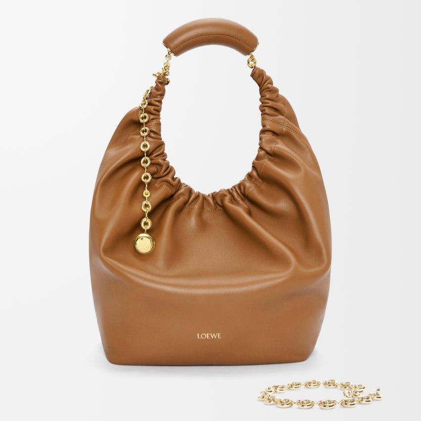 The Squeeze is a versatile design defined by a ruched body, a squeezy handle and a donut chain. This medium version is crafted in Leather .