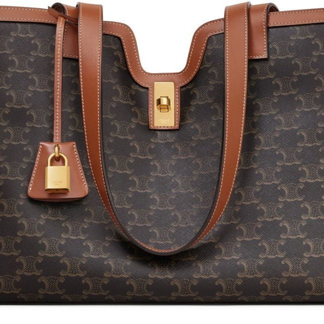 Introducing the Women's Celine Triomphe Canvas and Leather Tote, a luxurious and practical accessory. Made with high-quality canvas and leather, this tote features the iconic Celine Triomphe design. With its spacious interior and stylish exterior, this tote is perfect for any occasion