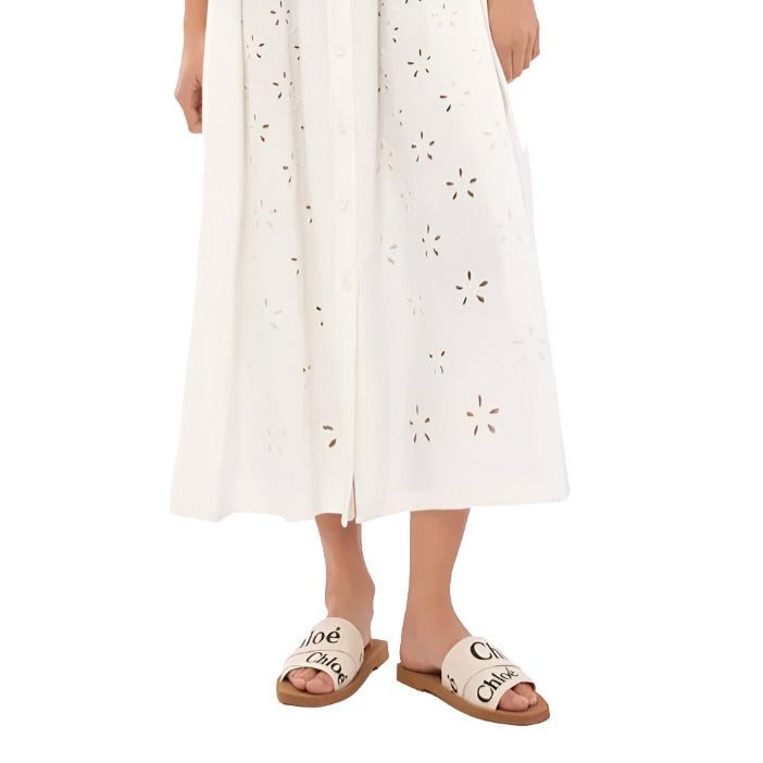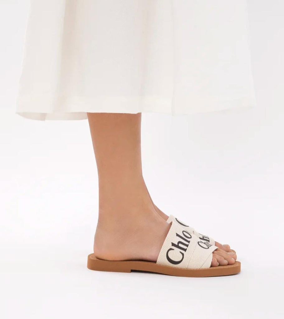 Revisited in lower-impact linen, this Woody flat mule reveals an interplay of different-sized ribbons with the Chloé logo in striking contrast. Together, they form a large upper for a comfortable fit.