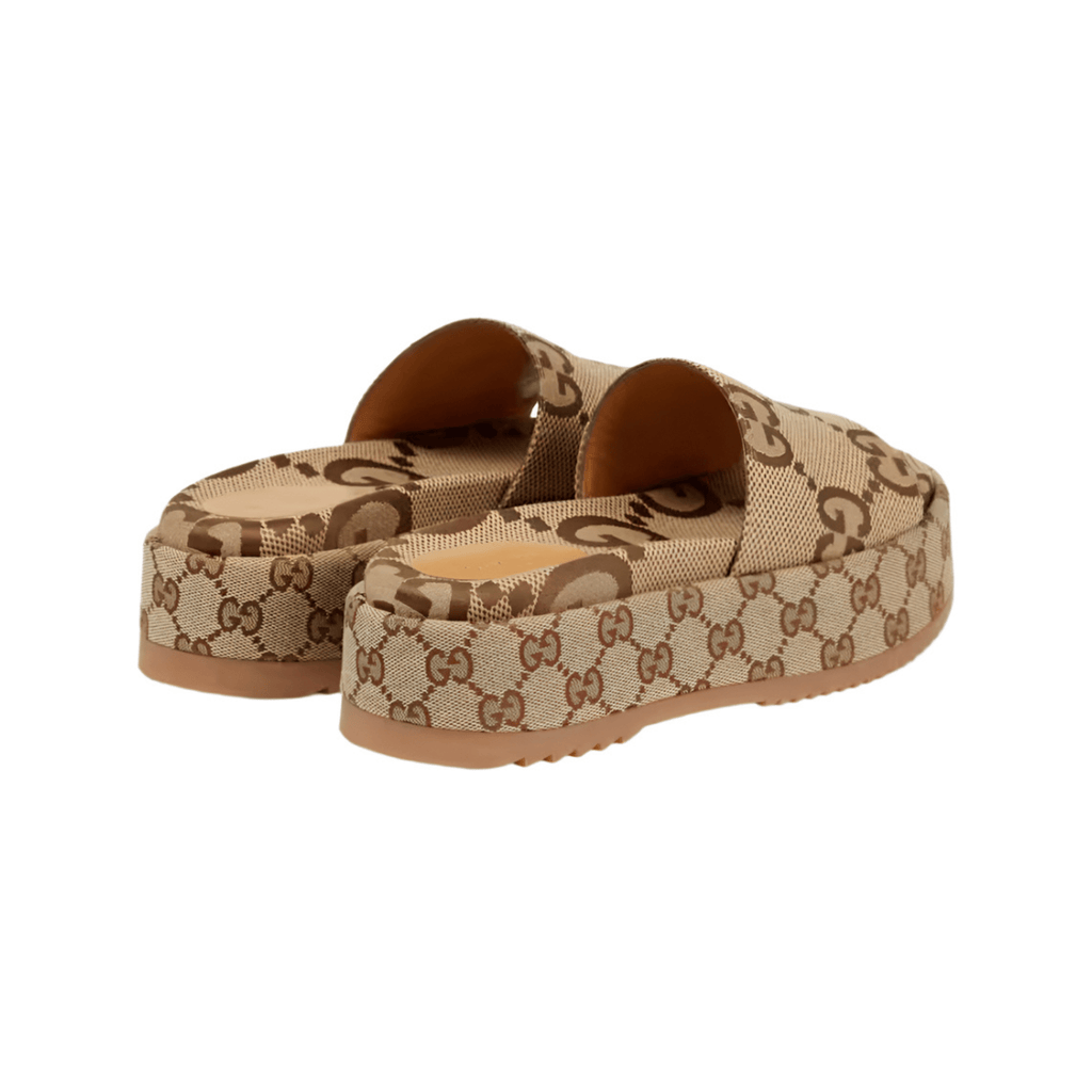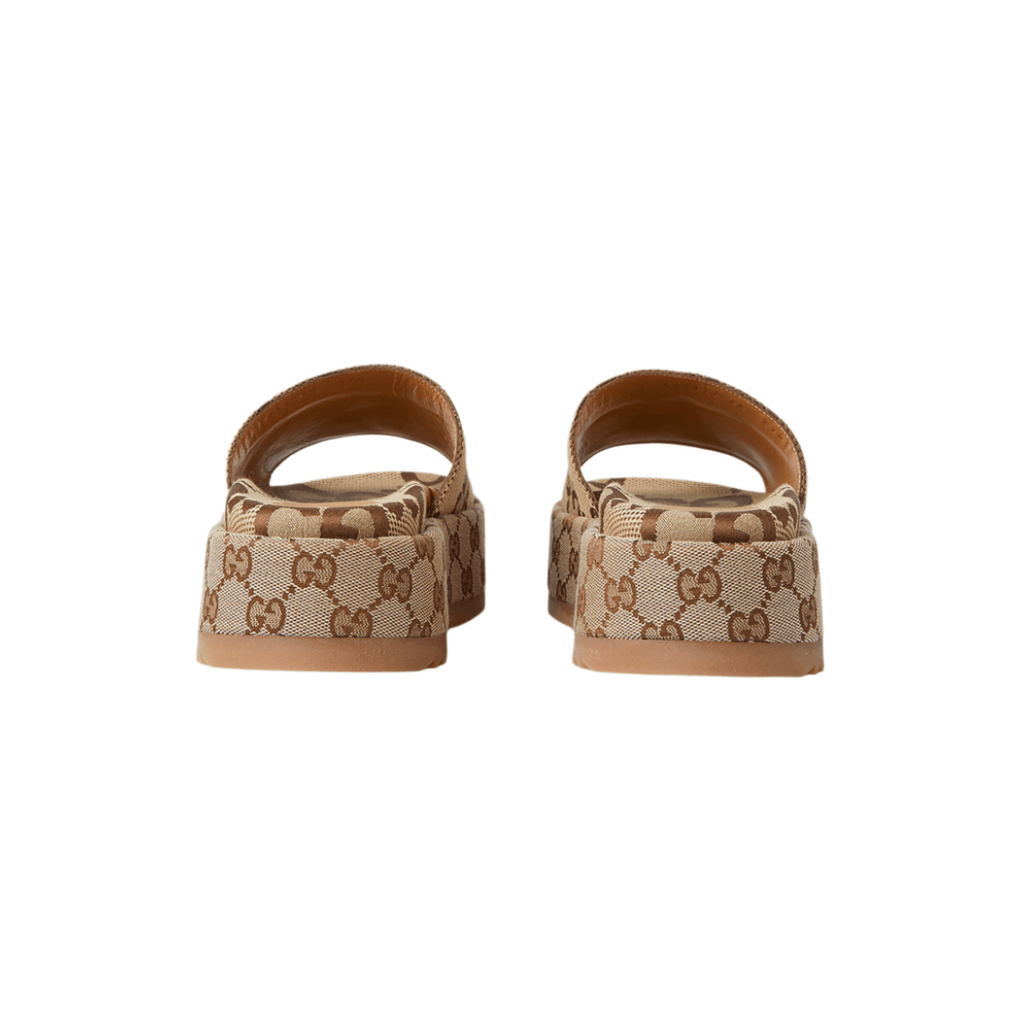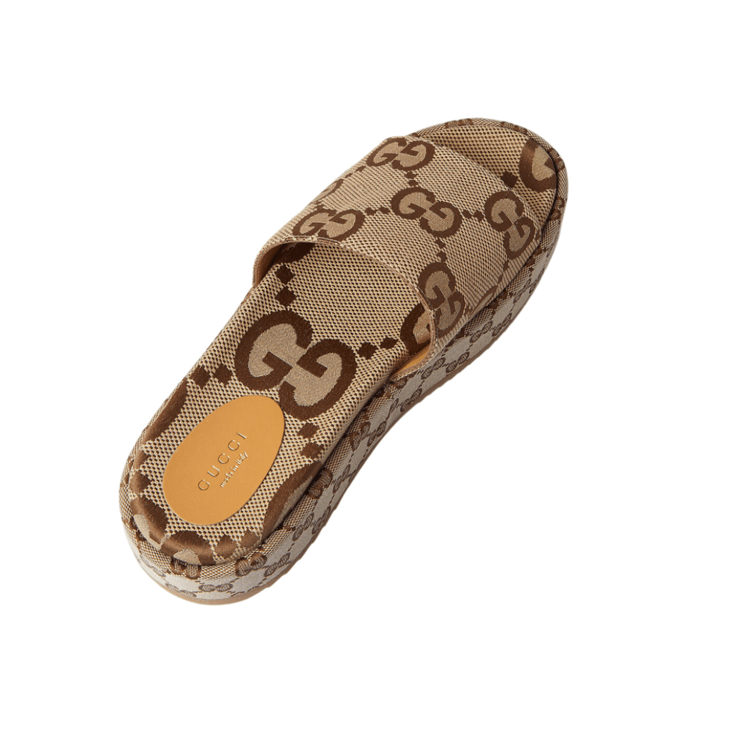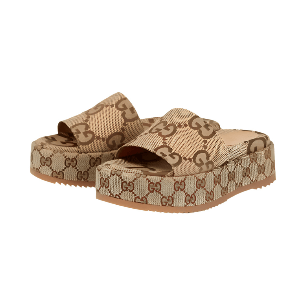 Introducing the Gucci GG Maxi Canvas Platform Slides. These slides feature the iconic GG logo on a maxi canvas platform, providing both style and comfort. With their unique design and superior craftsmanship, you'll make a statement wherever you go.