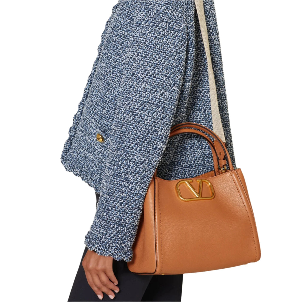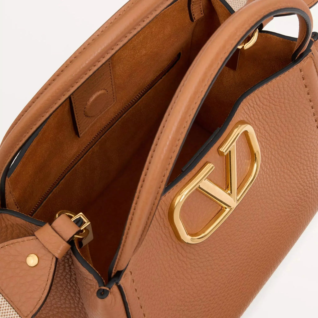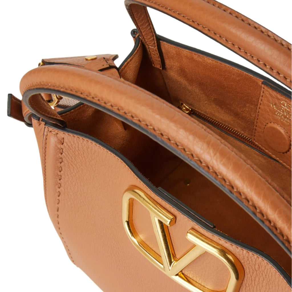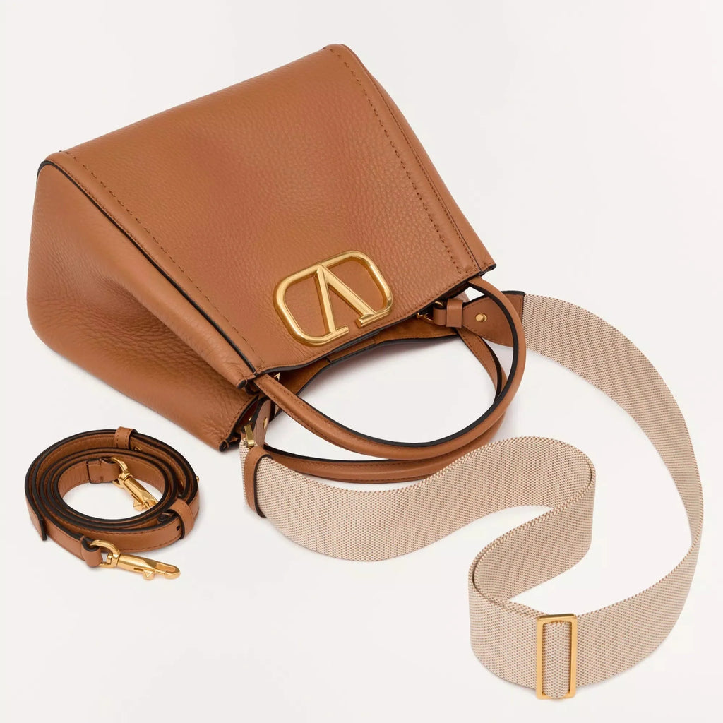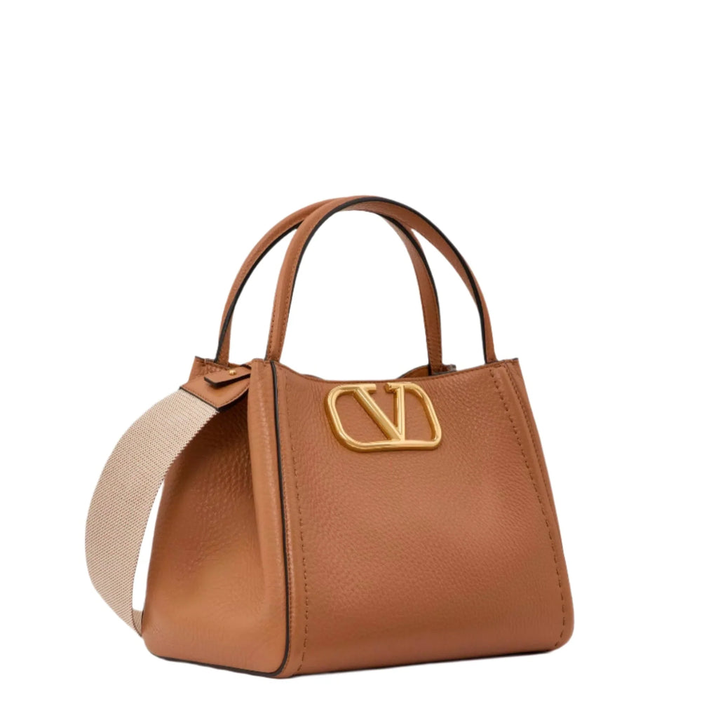 Valentino Garavani Alltime medium handbag in grainy leather with metallic VLogo Signature element. The bag can be worn on the shoulder/crossbody thanks to the shoulder straps or carried by hand thanks to the leather handles.