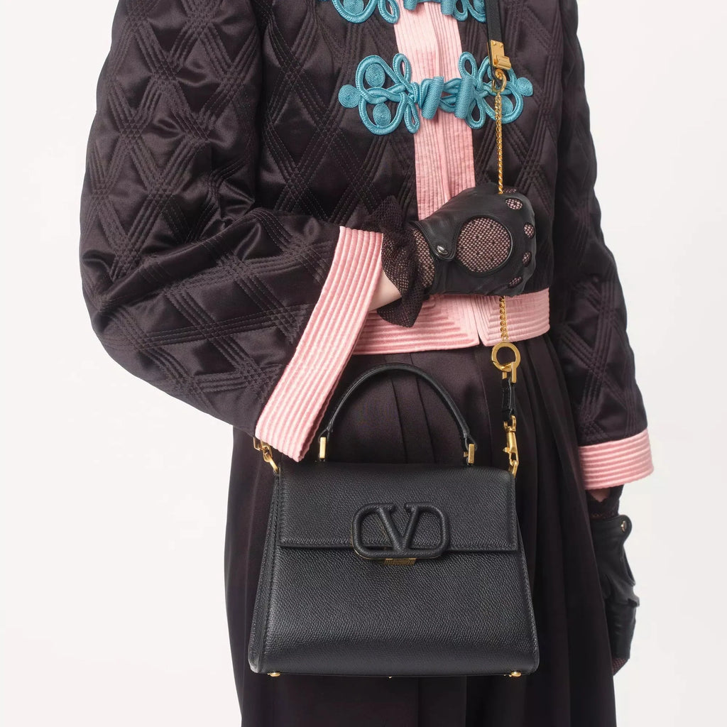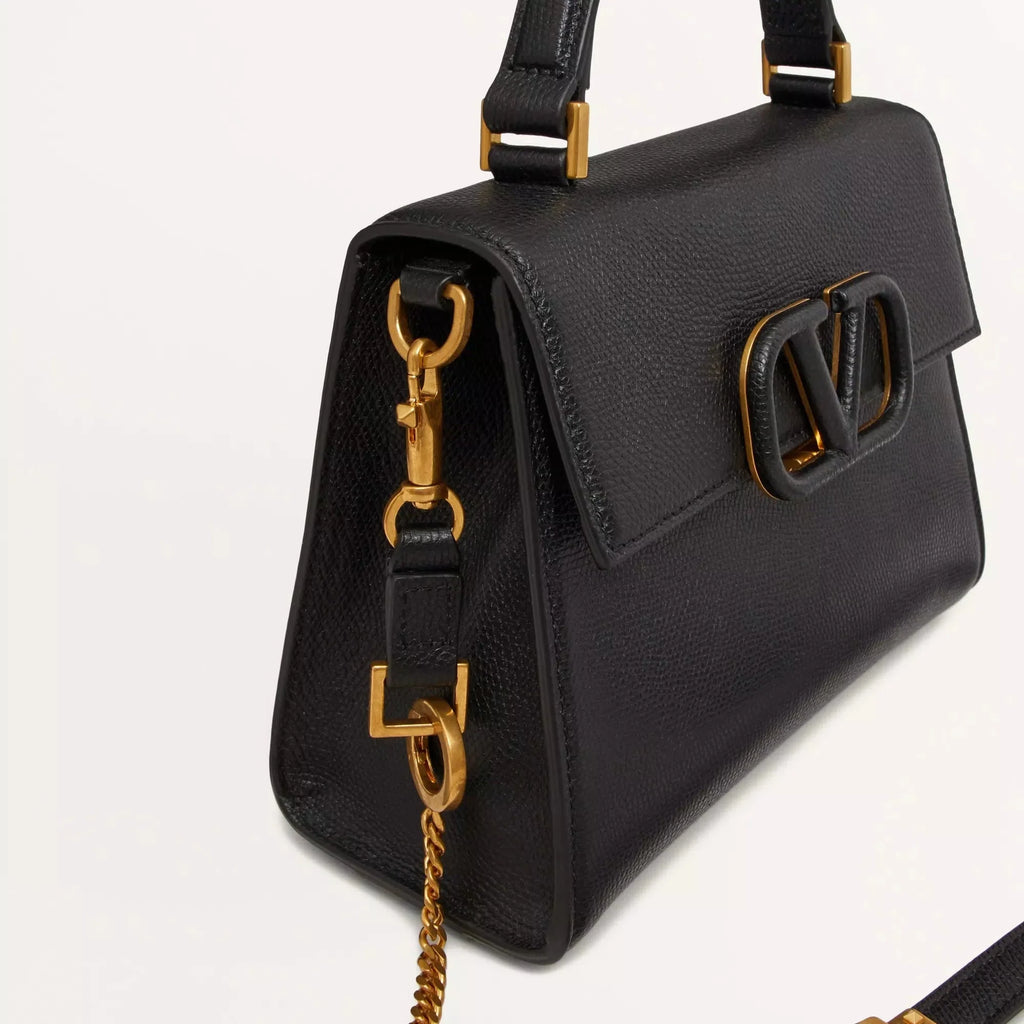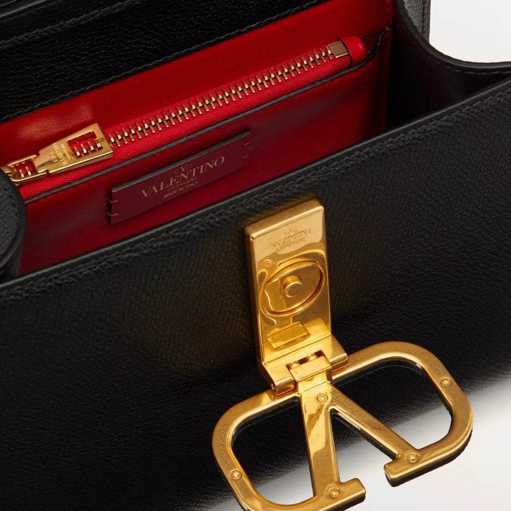 This Valentino Garavani VSling Small Leather Tote Bag is a versatile and stylish accessory. Crafted from high-quality leather, it boasts a spacious interior with multiple pockets for organization. The iconic VLogo hardware and adjustable shoulder strap add a touch of luxury to this practical and elegant bag