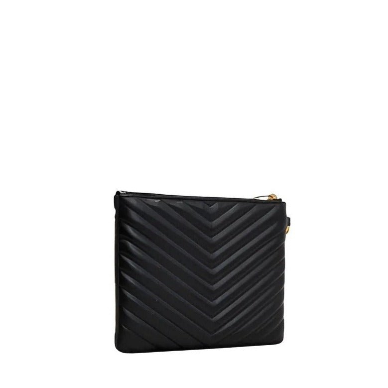 Protect your tablet in style with the Saint Laurent Black Matelasse Leather Monogram Tablet Case. Crafted from luxurious leather, this case features the iconic YSL monogram logo and a soft, padded interior to keep your tablet safe from scratches and bumps. The sleek design and classic black color make it a perfect accessory for the fashion-forward tech enthusiast