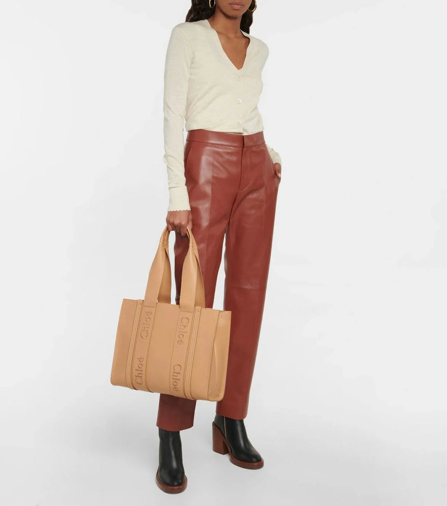 The Chloé Medium Leather Woody Tote Semon Bag is a stylish and functional accessory for the modern woman. Crafted with premium leather, this tote offers both durability and a luxurious feel. With its spacious interior and multiple pockets, it's perfect for carrying all your essentials while on the go. Upgrade your wardrobe with this must-have bag