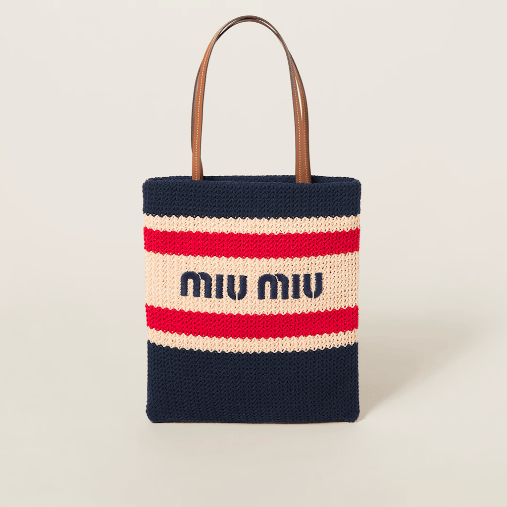 The Miu Miu Raffia-Effect Woven Tote Bag combines artisanal craftsmanship with contemporary design. Its raffia-effect texture offers a lightweight yet durable structure, ideal for everyday use or stylish outings. Spacious and versatile, this tote provides ample room for essentials while maintaining an elegant silhouette, making it a refined accessory for those who appreciate quality and understated luxury